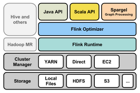 Apache Flink (incubating) is a new project at the Apache Software Foundation that is compatible with the Hadoop ecosystem and runs on top of HDFS and YARN. Flink pushes the technology forward in many ways. Flink has been created from the Stratosphere research project, which has been supported by the EIT ICTLabs and now is an active Apache Incubator project with a growing community of users and committers, both from academia, startups and companies.