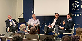 Mr Fuster’s speech was followed by a round table moderated by Gonzalo León, full professor in the School of Engineering and Telecommunications at the Universidad Politécnica of Madrid, and Deputy Rector for Innovation and Head of the Technological Innovation Support Center at the University. Other participants were Alberto Miranda from the Consulting Division of Atos Financial Services, and Román Benito, Liberbank's Digital Innovation Manager.