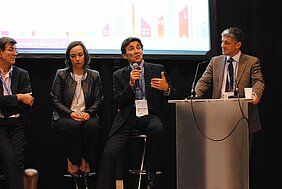 The Panelists were Valérie Issarny, Research Director at Inria Paris-Rocquencourt, François Richard, Orange, Philippe Koch, IBM, Isabelle Mari, Prospective and strategic Research Director, JC Decaux.