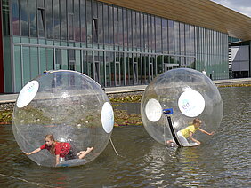 On 24 May, the High Tech Ontdekkings route took place at the High Tech Campus. This is a playful family event and more than 3000 visitors were counted. EIT ICT Labs Eindhoven took the chance to talk with parents on the Master School and career perspective in ICT while the children were walking on water in EIT ICT Labs branded balls. Some Master School students helped us in making PR. Next to this, we gave two presentations to the audience on how we bring innovations to life. The presentations took place in the Conference Centre of the High Tech Campus.