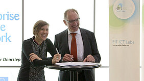 On March 17, 2015 EIT ICT Labs and Enterprise Europe Network (EEN) ICT Sector Group signed a Memorandum of Collaboration. Both organisations foster EU objectives, notably in the field of entrepreneurship, growth innovation, research and development and employment. In detail the agreement has the goal to establish a close cooperation between the Business Developers of EIT ICT Labs and the members of EEN. In this context the Business Developers can scout innovative SMEs and technologies as well as find the right partners to market these technologies by using the EEN contact network and the EIT ICT Labs partner network. With this agreement both organisations will ease the matchmaking between Small and Medium Enterprises and international business partners on a European level.
