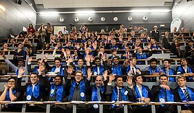 Hosted by the scientific and medical Pierre & Marie Curie University in Paris, 47 graduated students out of 54 could make the trip and received the EIT ICT Labs Master’s Certificate. They came from 10 universities in 6 countries, with family and friends from 16 nationalities. After the opening by Serge Fdida, UPMC Vice President, EIT ICT Labs tenants reminded the philosophy of the programme (see agenda of the day). "The uniqueness of EIT ICT Labs Master School is to apply knowledge across many situations and connect to the environment" said Frédéric Renouard Innovation & Entrepreneurship Education Coordinator. Live from Budapest, by video conferencing, the students could even talk with Tibor Navracsics, the European Commissioner for Education, Culture, Youth and Sport. Then, the certificates were distributed to each student along with a blue scarf that they displayed with honour the rest of the day. During the evening, students were offered a dinner at the 24th floor of the Zamansky tower in UPMC, with an exclusive view all over Paris.