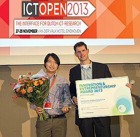 EIT ICT Labs focuses on splendid idea competitions addressing the brightest and most creative people from all over the world. ICT.OPEN 2013 that was held on 27 & 28 November is considered as one of these idea competitions. This event is the principal ICT research event in the Netherlands. The state of art in ICT research is presented and discussed here. It features a conference as well as poster presentations by PHd’s. ICT.OPEN is the place where Dutch ICT Talent showcase innovative ICT research proposals, network and exchange knowledge. EIT ICT Labs Eindhoven considers ICT.Open as an effective platform to stimulate an entrepreneurial mindset by young ICT top talent. Therefore an Innovation & Entrepreneurshio award was launched for the ICT proposal with the best market potential and business impact. The validation has been done by the business developers of EIT ICT Labs Eindhoven. They were also the jury.