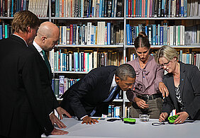 On a very brief visit to Stockholm, Sweden, U.S. President Barack Obama choose to pay a visit to KTH Royal Institute of Technology. KTH president Peter Gudmundson was pleased to present three innovations in the field of renewable energy solutions, specifically solar and fuel cell technology.