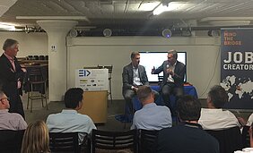 The first day kicked-off with European Innovation Day, which had over 400 attendees and five EIT Digital Accelerator companies including Konux, JUSP, Vaarani, HeiaHeia and Kopjra. The day was filled with inspiring speakers like Julie Hanna, The Presidential Ambassador for Global Entrepreneurship of US Government, and a Silicon Valley icon Larry Sonsini who was involved in the early inception of Apple, Google, and Airbnb. EIT Digital CEO Willem Jonker moderated a panel on Startup creation and Universities entitled “Does the partnership work?” with panelists from UC Berkeley, StanfordX and University of Cambridge.