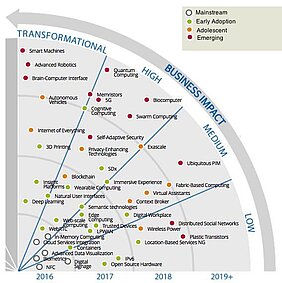Looking at Gartner 2016 emerging technology hype curve we find in the Innovation Trigger area general purpose machine intelligence, an important component of future autonomous systems, with a predicted landing time (time to hit the market) over 10 years. In the same range is Huma augmentation, neuromorphic hardware and brain computer interfaces.