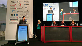 Sonormed the company behind Tinnitracks, had a real scoop to reveal at MEDICA. At the stage of the Technische Krankenkasse, they announced their partnership with EIT Digital’s core partner Fraunhofer for cooperation, to enhance patient individualisation features of Tinnitracks. It was major positive news for Sonormed and again a big milestone in their ‘roller coaster’ after winning the Idea Challenge 2014.
