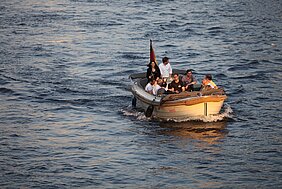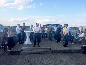 Parallel to the boat-pitches the other participants from startups and industry enjoyed the international atmosphere and discussed business opportunities on the nearby rooftop.