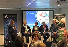 The event climaxed on a panel discussion on “The future of innovation and the added-value of the EIT Community”. Participants to the panel, moderated by Martin Kern (EIT Interim Director) were Willem Jonker (EIT Digital CEO, also representing the entire EIT Community), Lambert Van Nistelrooij (Member of the European Parliament), Martine Reicherts (European Commission, Director at General DG Education and Culture), and Patrick Child (European Commission, Deputy Director at General DG).