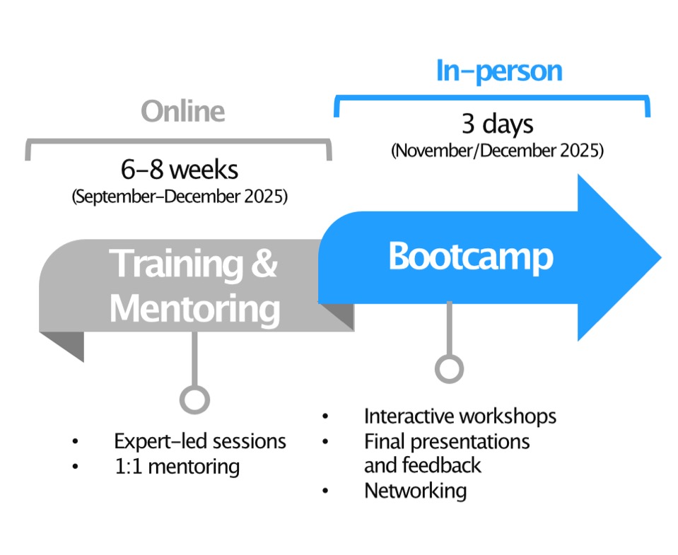 Each programme ends with an in-person bootcamp in a leading European innovation hub, where participants refine their ideas, pitch, and connect with peers and industry. Attendance is required and accommodation is covered if needed.
